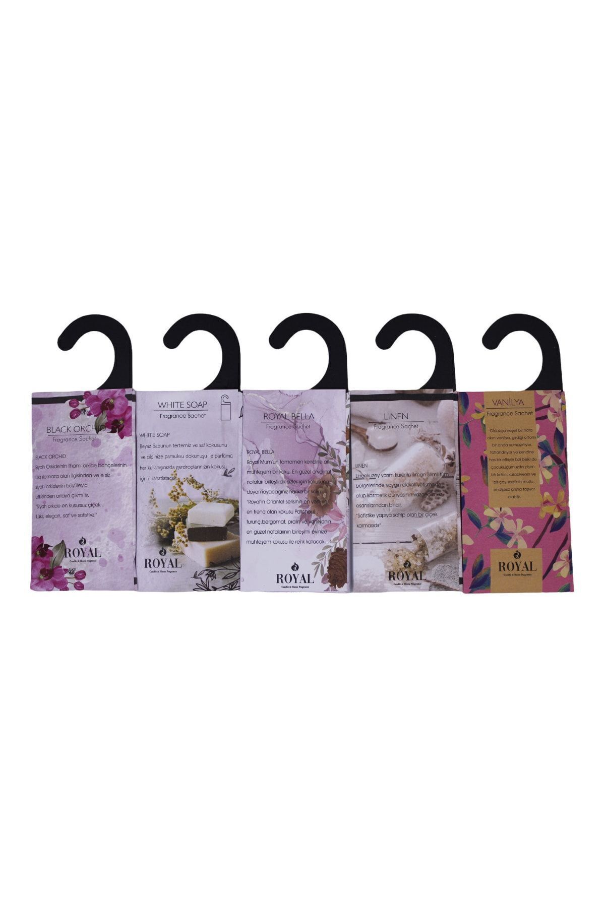 5 Adet Kokulu Kese Royal Bella -soft Linen – Beyaz Sabun – Black Orchıd – Vanılya