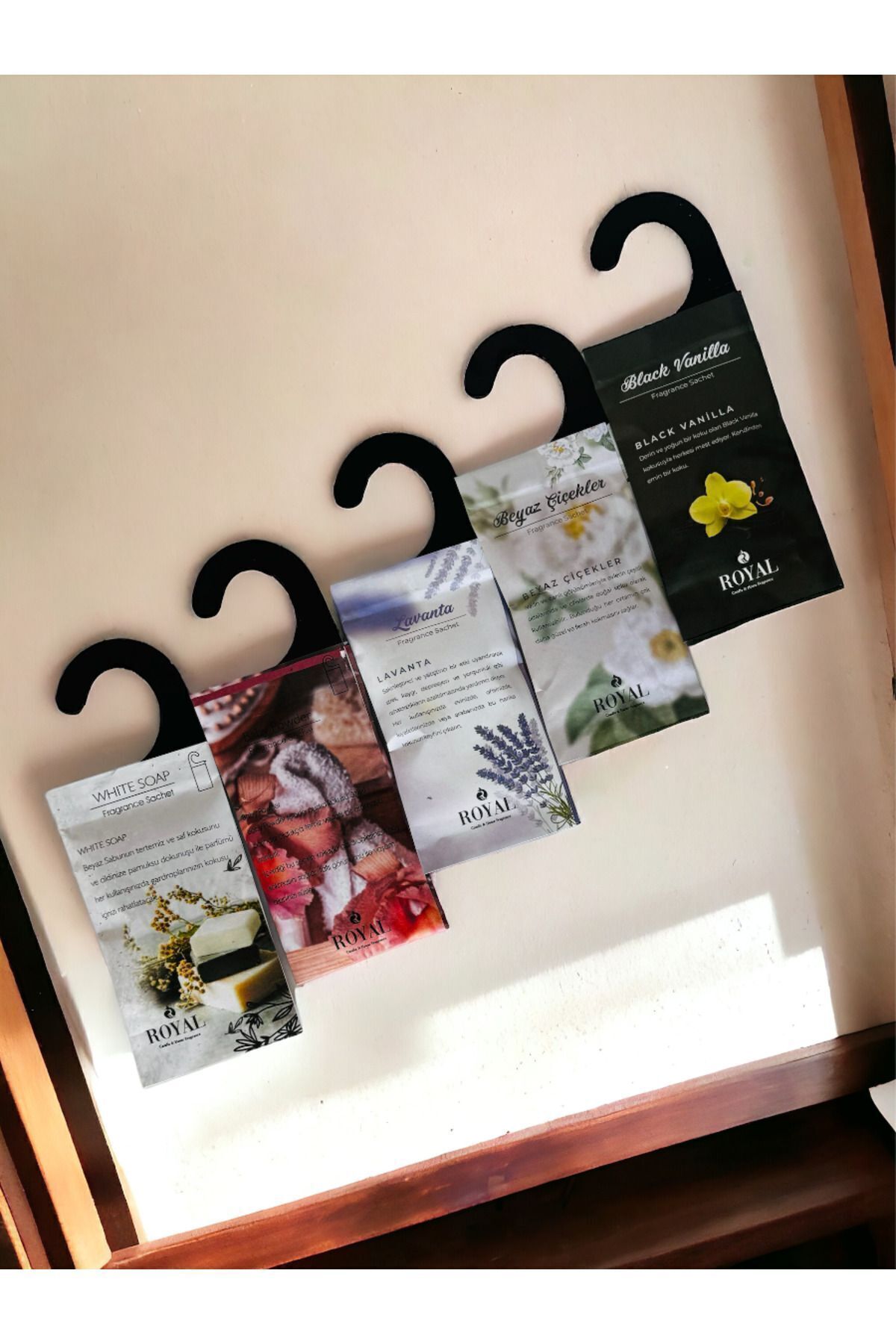 Beş adet lavanta ve beyaz çiçek aromalı koku kesesi, evinizin her köşesine tazelik ve ferahlık getirir; Lavanta ve beyaz çiçeklerin doğal kokusu, stres atmanızı ve zihninizi rahatlatmanızı sağlar; Beyaz sabun ve baby powder ile birlikte gelen bu set, hem temizlik hem de hoş bir koku deneyimi sunar; Black vanilya özü, evinizin atmosferine derinlik katar ve hoş bir aroma yayarak gün boyu ferahlık hissi verir;