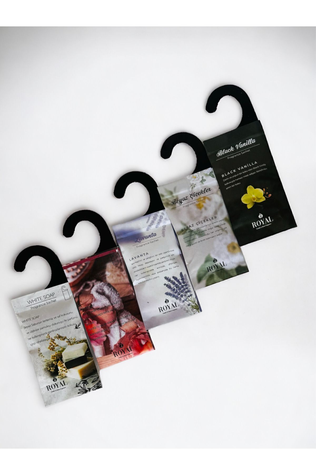 Koku Kesesi -5 Adet – Lavanta-Beyaz Çiçekler- Beyaz sabun – Baby powder-Black Vanilya