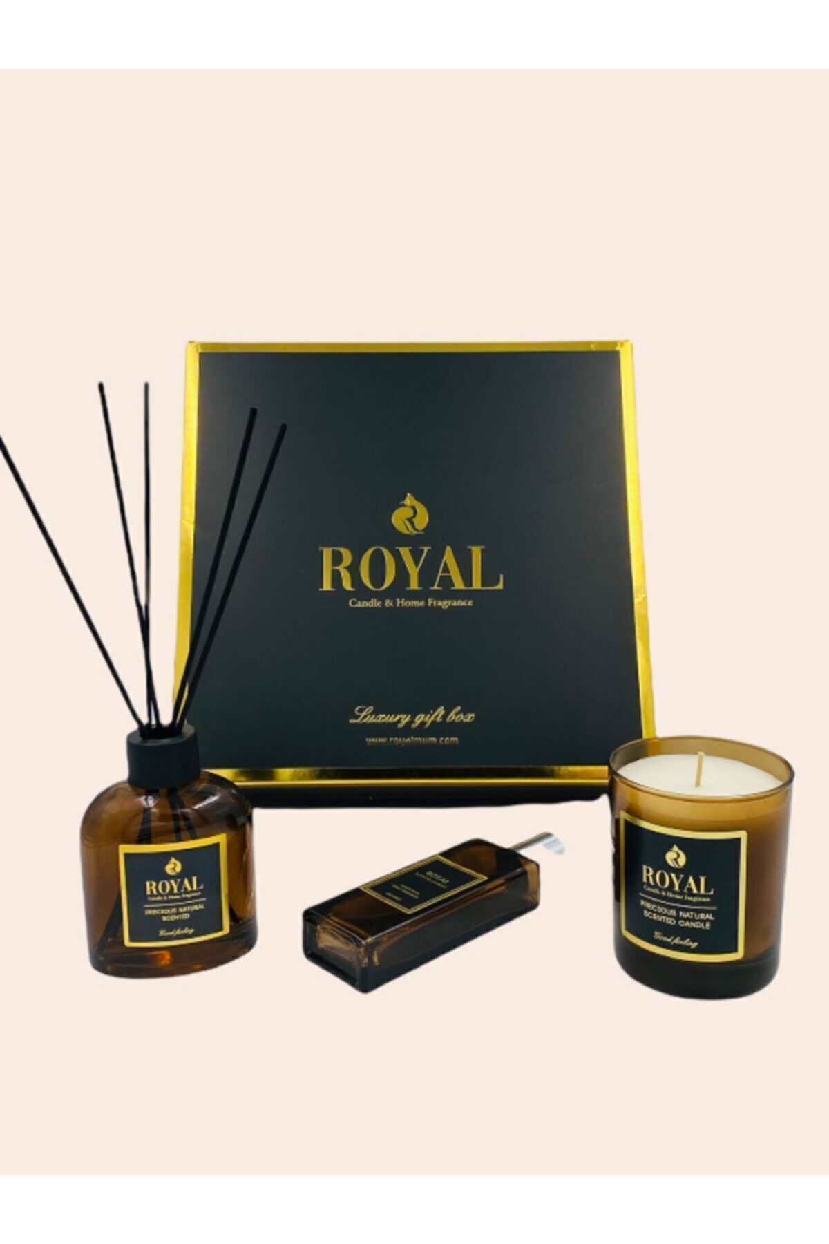 3 lü tarçınlı –zencefili kek (gingerbread ) kokulu amber cam set ve şık hediye kutusu Ürün içeriği : ; Ürün 1 : Bardak mum 250 ml / çap 7 cm – boy 9 cm . – Esans ve bardak mukavemeti artırılmış özel formül naturel roywax ile imal edilmiştir. ; Ürün 2 : Oda kokusu 100 ml 1 kalite olarak şık şişesi ve lüks kokusu ile özel olarak hazırlanmıştır. ; Ürün3 : Çok amaçlı ortam parfümü• 100 ml • 1. Kalite olarak sprey şık şişesi ile ortam parfümü ;