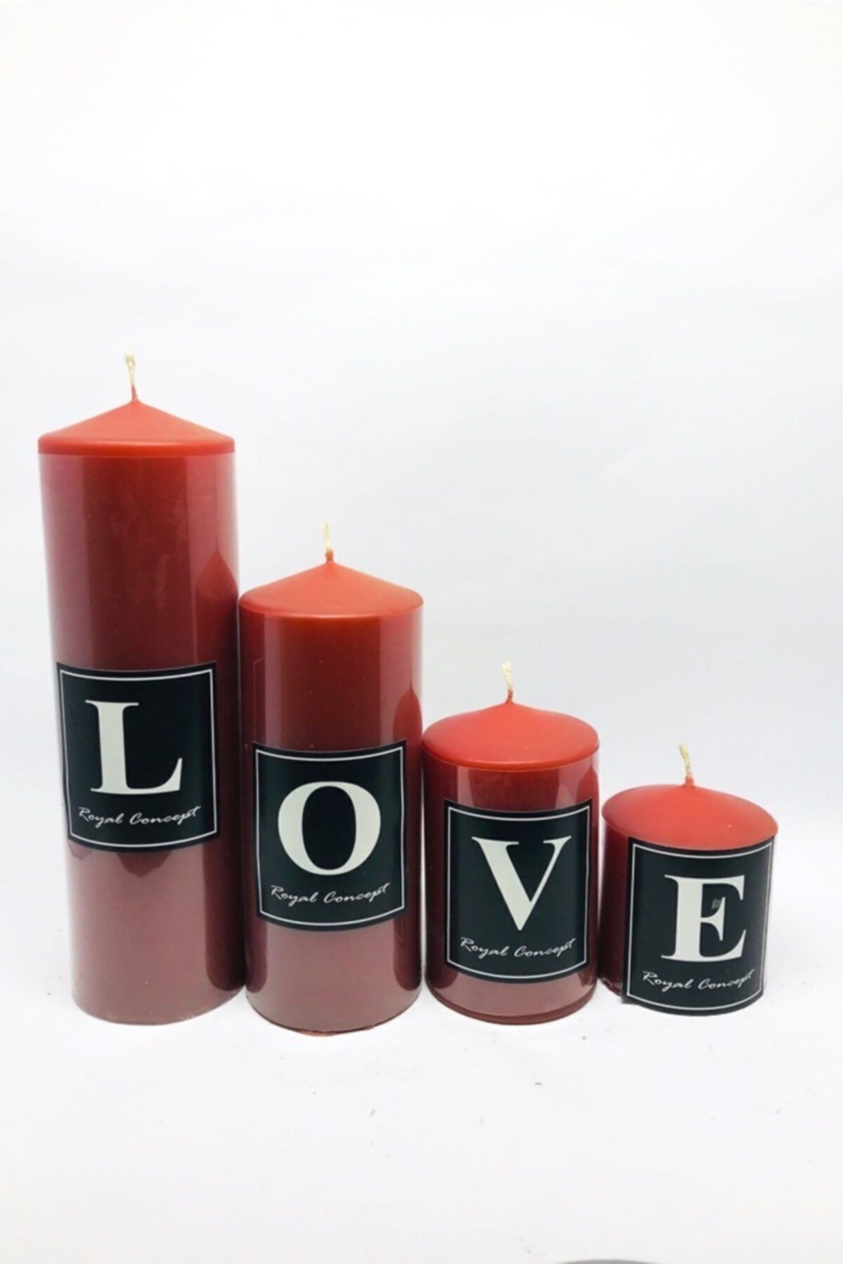 Etiketler: 4lü Kırmızı Mum Seti, Canlı Kırmızı Dekor, Dekoratif Kırmızı Sütun, Farklı Boylarda Silindir Mum, Kademeli Mum Seti