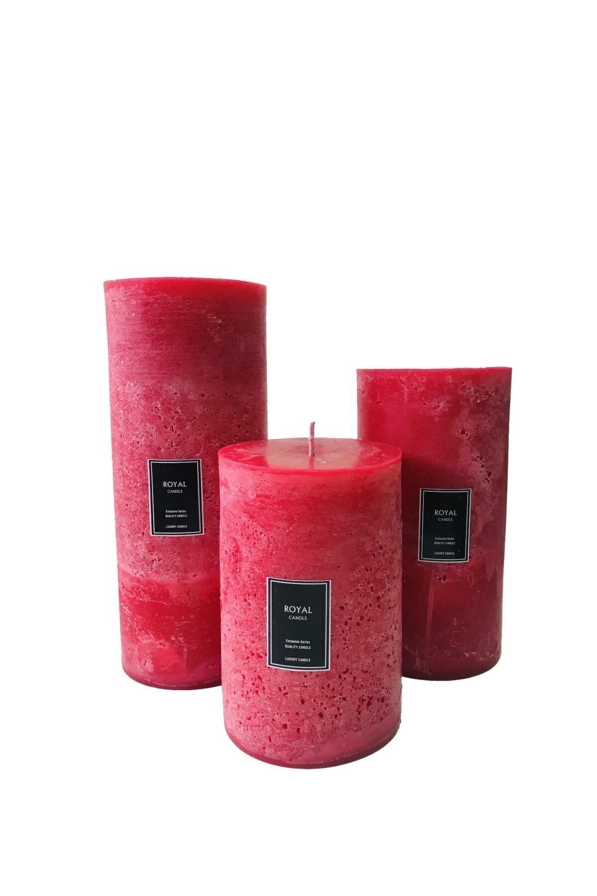 Silindir Mum Rustik Kırmızı 3 Lü Set Çap 10 Boylar 15-20-25 Cm